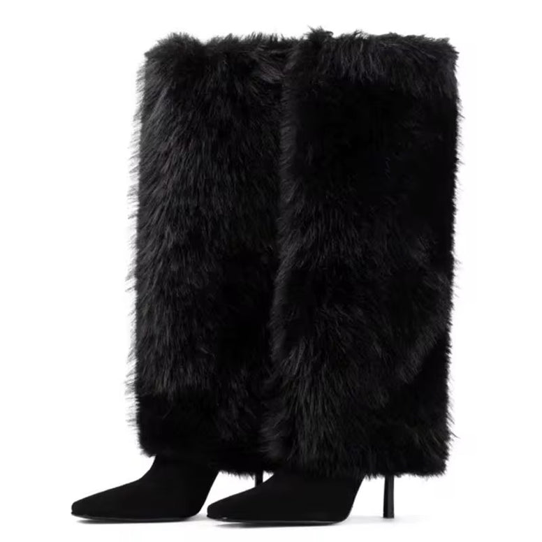 Fur Fantasy Knee-High Stiletto Boots